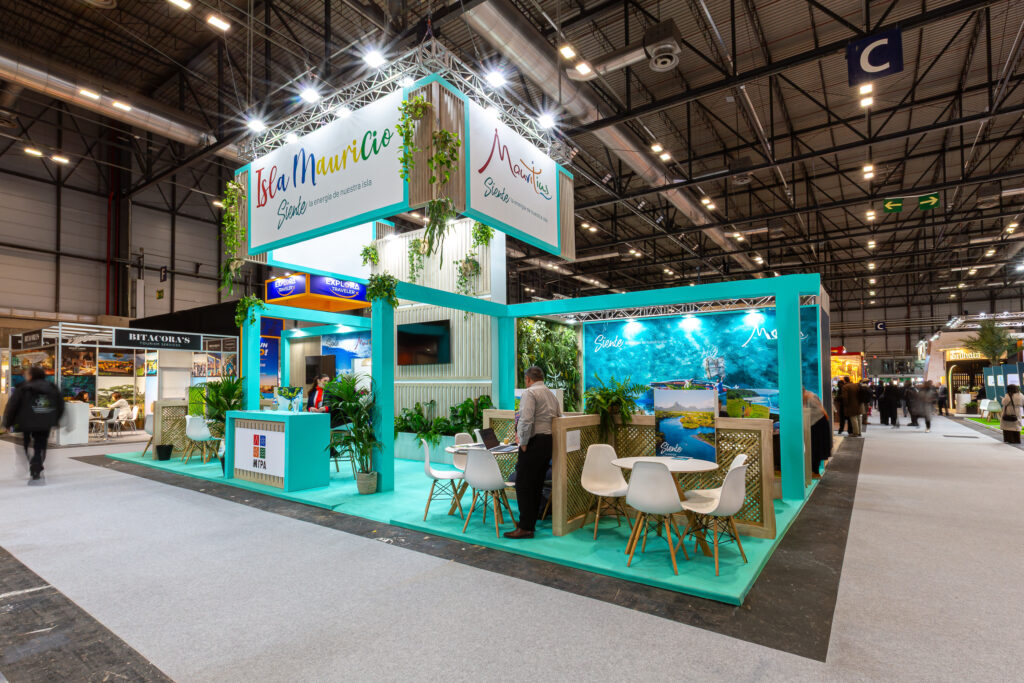 Custom stand design and construction for Mauritius, a leading international premium tourism destination, showcased at FITUR 2026.